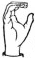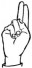 На ћирилици написано АЛЕКСА ЧАЛОШЕВИЋ састоји се из 15 слова [?]. Исписано ћириличном једноручном азбуком за глувонеме: